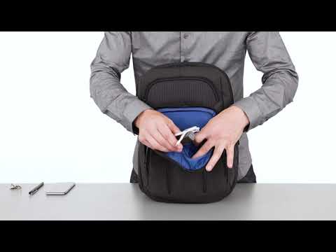 • Väikeste elektroonikaseadmete ja tarvikute korraldamiseks saate kasutada esipaneeli, millel on hoiutaskud, elastsed aasad ja tõmblukuga võrktasku, PowerPocket-kaablihaldussüsteem võimaldab laadimist ka liikvel olles