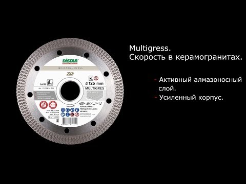 DISTAR MULTIGRES имеет ультратонкий алмазный слой 10 мм высотой и толщиной 1,4 мм, что делает работу максимально продуктивной. Это самый скоростной диск для сухого резания керамики на УШМ. Его скорость достигает 2 погонных метра в минуту.